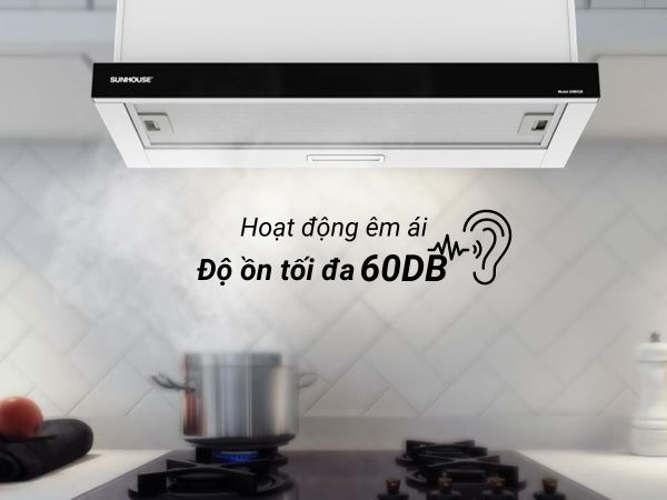 Máy hút mùi Sunhouse SHB6128 còn ghi điểm cộng với người dùng bởi hoạt động khá êm ái, nhẹ nhàng, không gây tiếng ồn lớn khó chịu. Độ ồn tối đa của máy ở mức 60dB rất lý tưởng cho gia đình, kể cả những gia đình có người già hay trẻ nhỏ đều không lo bị làm phiền bởi tiếng ồn khi máy hoạt động.