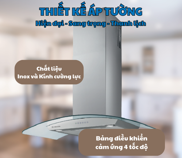 Máy được trang bị bảng điều khiển cảm ứng hiện đại, mang đến trải nghiệm sử dụng mượt mà và tinh tế. Với 4 tốc độ hút, bạn có thể dễ dàng điều chỉnh công suất phù hợp với lượng khói và mùi trong bếp. Chức năng hẹn giờ tiện lợi giúp bạn chủ động trong việc sử dụng, tiết kiệm thời gian và điện năng.