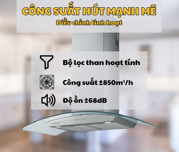 - Công suất hút mạnh mẽ, hiệu quả khử mùi cao.