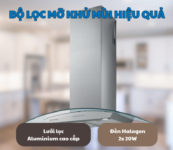 - Lưới lọc nhôm dễ vệ sinh, đèn Halogen c