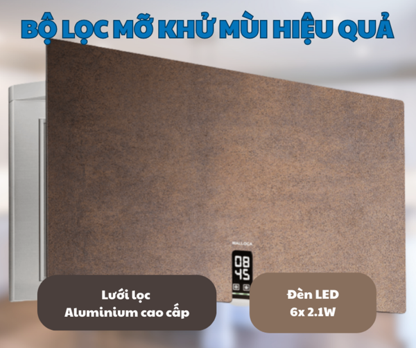 Hệ thống lọc và khử mùi là một trong những điểm nổi bật của máy hút mùi Malloca TIME K-16 BRUNO. Với than hoạt tính làm lọc, máy có khả năng hấp thụ và khử mùi tốt, loại bỏ hầu hết các mùi khó chịu và độc hại. Lưới lọc nhôm được thiết kế đặc biệt giúp tăng cường hiệu quả lọc bụi và hạt bẩn, đảm bảo không khí trong nhà luôn trong lành