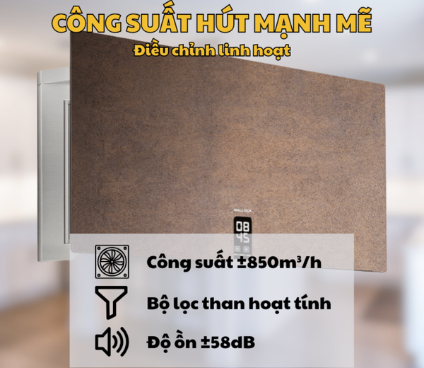 Máy hút mùi Malloca có công suất hút lên đến 850m³/h, đảm bảo sức hút mạnh mẽ để xử lý nhanh chóng và hiệu quả các khí thải và mùi từ bếp. Với 3 tiết diện hút, máy có thể mở rộng phạm vi hoạt động, đảm bảo khử mùi toàn diện trong khu vực sử dụng.