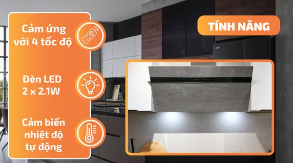 Máy hút mùi sử dụng bảng điều khiển cảm ứng với 4 cấp độ hút cho phép người dùng dễ dàng điều chỉnh mức độ hút phù hợp với nhu cầu sử dụng. Bảng điều khiển này còn kết nối với bếp Integra, mang lại sự đồng bộ và tiện lợi khi sử dụng các thiết bị trong không gian bếp thông minh.