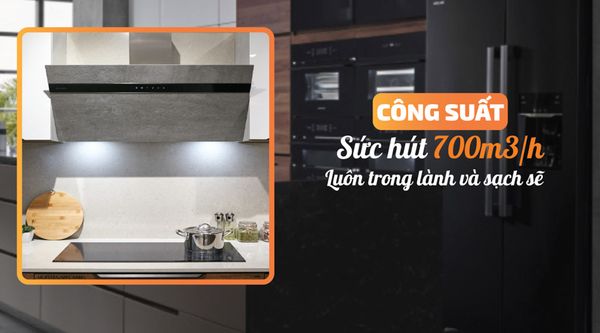 Với công suất hút lên đến 700 m3/h, máy hút mùi Malloca VITA V-13 GRES dễ dàng loại bỏ mùi hôi, khói và hơi dầu mỡ trong bếp, giữ cho không khí luôn trong lành và sạch sẽ. Bên cạnh đó, máy còn được trang bị hệ thống hút kép giúp tăng hiệu quả hút, mang lại sự thoải mái tối đa cho người dùng.