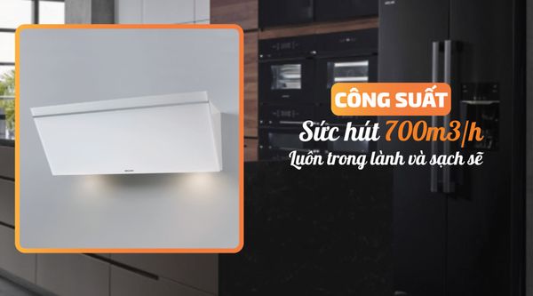 Với công suất hút 700m³/h và độ ồn chỉ 59dB, Malloca VITA V-3 đảm bảo hiệu suất loại bỏ khói và mùi tối ưu mà không gây tiếng ồn đáng kể, mang lại sự yên tĩnh và thoải mái cho không gian bếp.