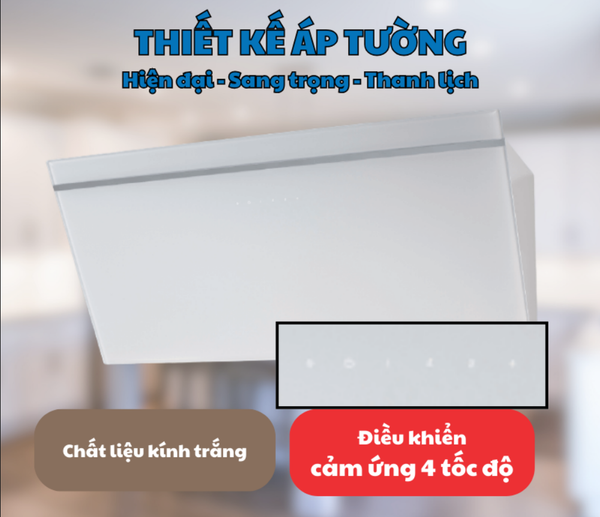 Malloca VITA V-3 sở hữu thiết kế áp tường với chất liệu kính trắng sang trọng, phù hợp với nhiều phong cách thiết kế bếp khác nhau. Kích thước và hình dạng của máy được tối ưu hóa để vừa đảm bảo hiệu suất hút mùi tối đa, vừa tiết kiệm không gian, tạo nên một không gian bếp rộng rãi và thông thoáng.