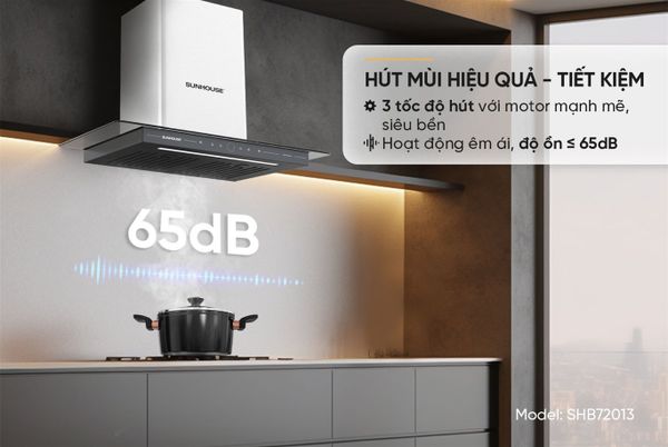 Với độ ồn thấp chỉ ≤ 65dB, máy hút mùi Sunhouse SHB72013 đảm bảo vận hành êm ái và yên tĩnh, không làm ảnh hưởng đến không gian sống của gia đình bạn. Đặc biệt, máy hoạt động cực kỳ nhẹ nhàng, mang đến sự thoải mái cho người dùng, kể cả trong không gian bếp mở hoặc gia đình có trẻ nhỏ và người lớn tuổi. Máy hút mùi này giúp bạn có thể tập trung nấu nướng mà không lo bị làm phiền bởi tiếng ồn.
