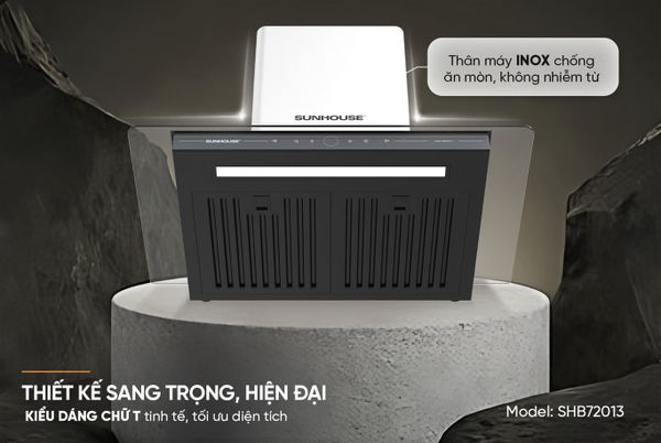 Máy hút mùi Sunhouse SHB72013 được thiết kế với kiểu dáng chữ T tinh tế, tạo điểm nhấn sang trọng cho căn bếp. Thiết kế này không chỉ giúp tối ưu hóa diện tích không gian mà còn phản ánh sự lựa chọn tinh tế và hiện đại của người tiêu dùng. Kiểu dáng chữ T mạnh mẽ và thanh thoát giúp tăng thêm vẻ đẹp và giá trị thẩm mỹ cho không gian bếp, đồng thời phù hợp với nhiều phong cách nội thất khác nhau.