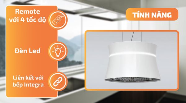 Để đồng bộ hóa quy trình nấu nướng thêm thuận tiện và hiệu quả hơn, máy hút mùi được tích hợp thêm điều khiển Integra có thể kết nối trực tiếp bếp từ với máy hút mùi vô cùng tiện lợi.