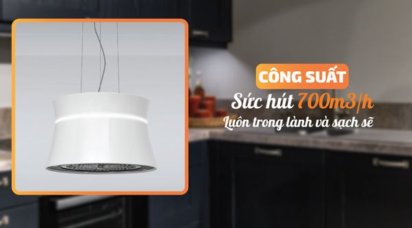 Sản phẩm có mức công suất cao lên đến 700 m3/h cho hiệu năng hoạt động bền bỉ, hút sạch mọi khói mùi, mang đến không khí trong lành cho gian bếp. Máy sử dụng điện nguồn 220-240 V/50 Hz nên rất tiết kiệm điện năng cho gia đình.