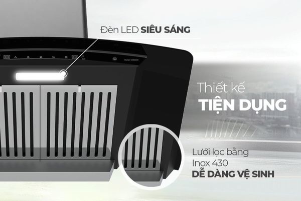 Máy hút mùi Sunhouse SHB6689 sở hữu thiết kế kính cong sang trọng, thân máy sơn tĩnh điện màu đen lịch lãm, dễ kết hợp với mọi không gian bếp, cùng hệ thống bảng điều khiển cảm ứng hiện đại, tăng thêm tính thẩm mỹ và sang trọng cho gian bếp. Đặc biệt còn có công nghệ điều khiển vẫy tay thông minh, điều khiển không chạm vô cùng tiện lợi. Với công suất hút 750 m³/giờ khá mạnh mẽ, mọi mùi thức ăn khó chịu sẽ được loại bỏ nhanh chóng, hiệu quả.