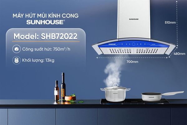 Máy hút mùi kính cong SUNHOUSE SHB72022 có công suất 750m³ /h, 3 tốc độ hút cho hiệu quả hút mùi tốt ưu lại tiết kiệm điện năng. Mùi dầu mỡ hay các mùi khó chịu khác trong quá trình nấu nướng sẽ nhanh chóng bị hút sạch, không ám mùi lên quần áo, các vật dụng nhà bếp hay các không gian liền kề khác (điển hình như thiết kế căn hộ chung cư). Đặc biệt, máy vận hành êm ái với độ ồn chỉ 65db nên không hề gây ảnh hưởng đến sinh hoạt của gia đình bạn.