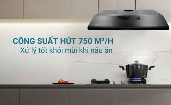 Công suất hút 750 m³/h xử lý tốt khói mùi khi nấu ăn