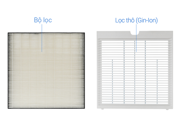 - Bộ lọc gồm: màng lọc thô (Gin-Ion), phin lọc tĩnh điện HEPA, màng lọc khử mùi.