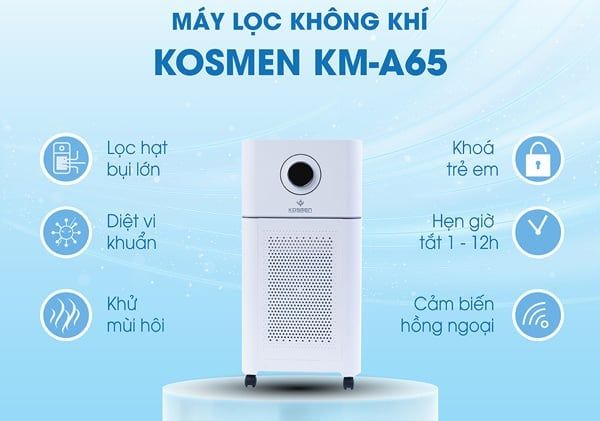 Máy lọc không khí Kosmen KM-A65 là thiết bị cần thiết cho mọi gia đình trong cuộc sống hiện đại. Sản phẩm giúp loại bỏ bụi bẩn, vi khuẩn và các chất ô nhiễm trong không khí, mang lại không gian sống trong lành, dễ chịu và bảo vệ sức khỏe cho cả gia đình.