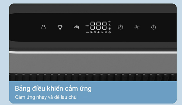 Bảng màn hình cảm ứng nhạy bén, hiển thị đèn báo chất lượng không khí trực quan giúp bạn dễ dàng quan sát và điều chỉnh. Thiết kế chốt cài tháo lắp nhanh giúp thay bộ lọc chỉ trong vài giây mà không cần dụng cụ hỗ trợ.