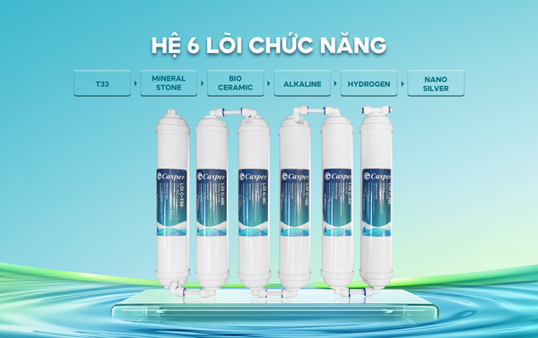 Hệ 6 lõi lọc chức năng giúp cải thiện chất lượng nước sau khi lọc, tăng cường khoáng chất, cân bằng pH hỗ trợ sức khoẻ