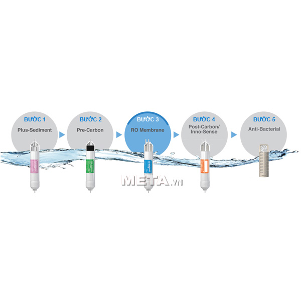 - Hệ thống lọc hiện đại được thực hiện gồm 6 bước, kết hợp trong 5 lõi lọc: Plus-sediment, Pre Carbon, R/O, Post Carbon và Ceramic:
