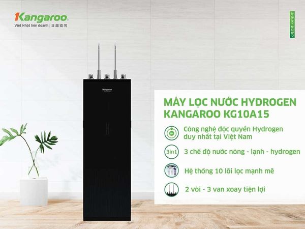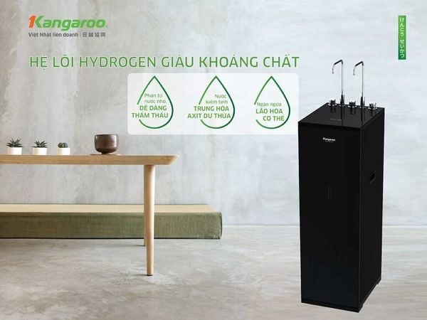 Duy nhất Kangaroo có bằng sáng chế độc quyền thiết bị lọc nước Hydrogen. Nước Hydrogen tươi bổ sung vi khoáng tự nhiên và chất điện giải có lợi, giúp tăng cường miễn dịch và nước có vị ngon tự nhiên. Đồng thời hoạt động như một chất chống oxy giúp loại bỏ gốc tự do có hại gây lão hóa, các bệnh dạ dày…