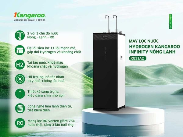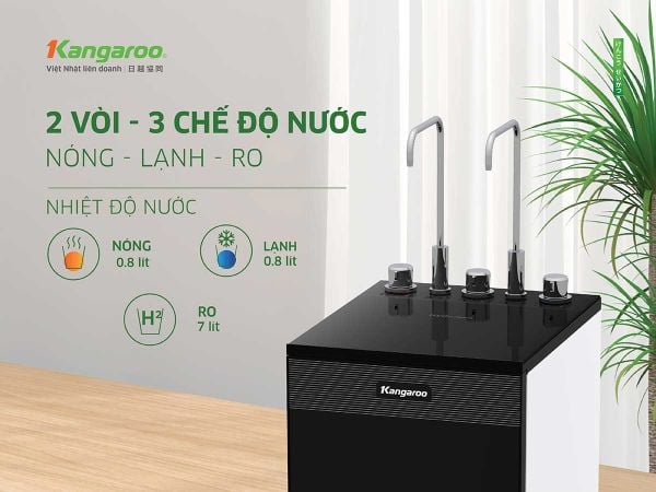 Máy lọc nước nóng lạnh Kangaroo này có 2 vòi lấy nước cùng 3 chế độ nước là nóng, lạnh và Hydrogen có thể đáp ứng mọi nhu cầu sử dụng của các gia đình.