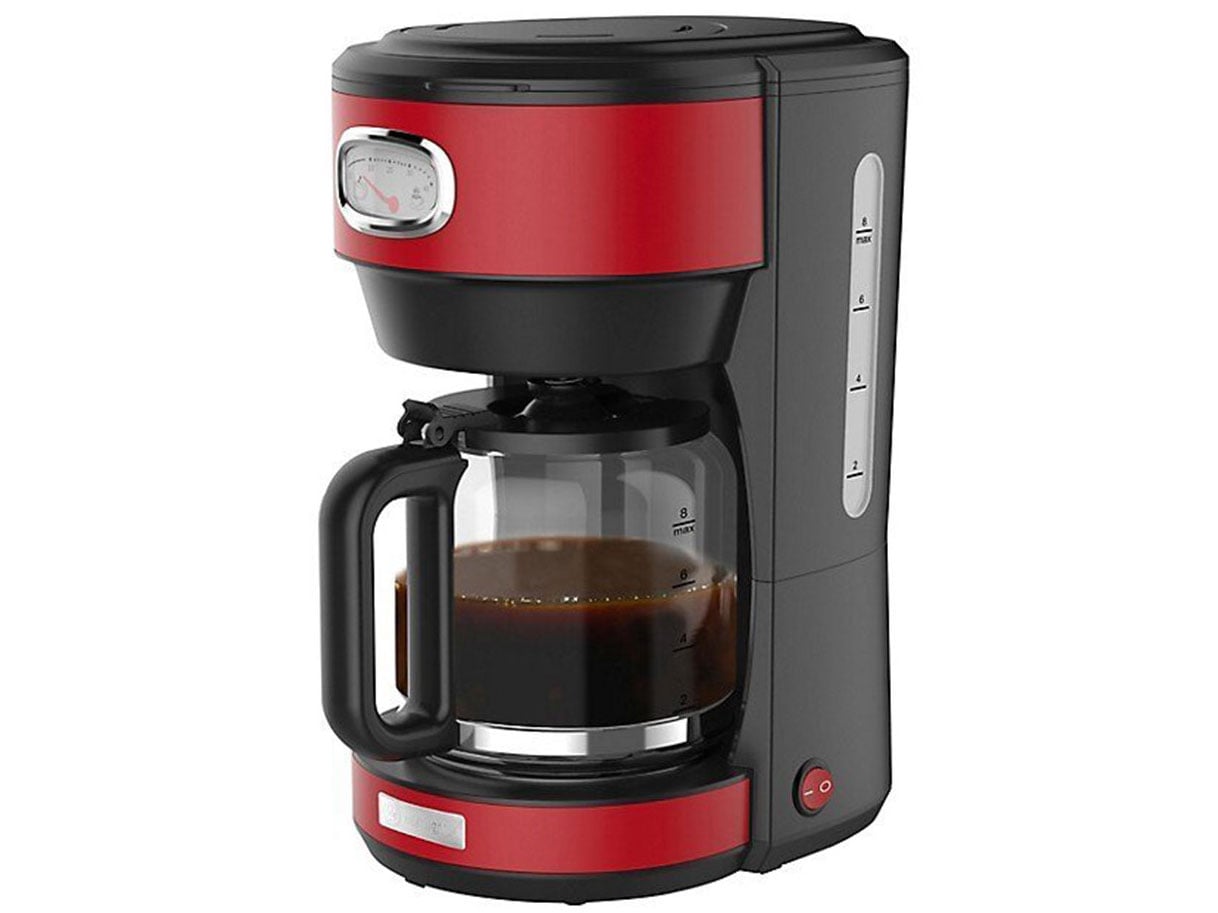 Máy lọc cà phê sở hữu màu đỏ đen sang trọng, kích thước gọn gàng, kiểu dáng hiện đại, vỏ nhựa dễ lau chùi vệ sinh.