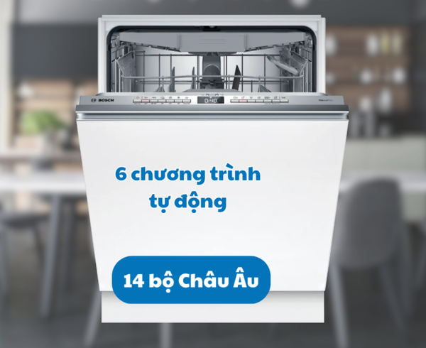 Máy rửa bát Bosch SMV4HCX19E Series 4 sở hữu dung tích chứa lớn, có thể rửa đến 14 bộ đồ ăn tiêu chuẩn Châu Âu, mang lại sự tiện lợi tối đa cho gia đình đông thành viên hoặc những buổi tiệc tùng, sum vầy.