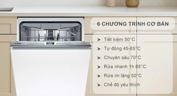 Nhờ vào các chương trình này, máy rửa bát âm toàn phần Bosch SMV4HCX19E Series 4 sẽ đáp ứng được mọi yêu cầu khắt khe nhất, từ việc tiết kiệm năng lượng đến việc xử lý các vết bẩn cứng đầu, mang lại kết quả rửa tối ưu trong mọi tình huống.