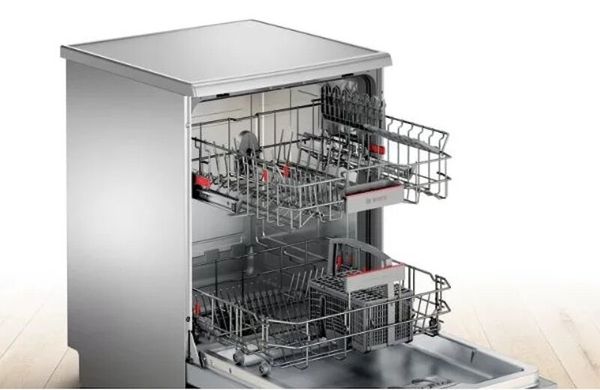 - Phần thân máy rửa bát Bosch được làm từ chất liệu thép không gỉ đem đến độ sáng bóng cao, chống oxi hoá, chống bám bẩn, không bị han gỉ, giúp tăng độ bền của sản phẩm.