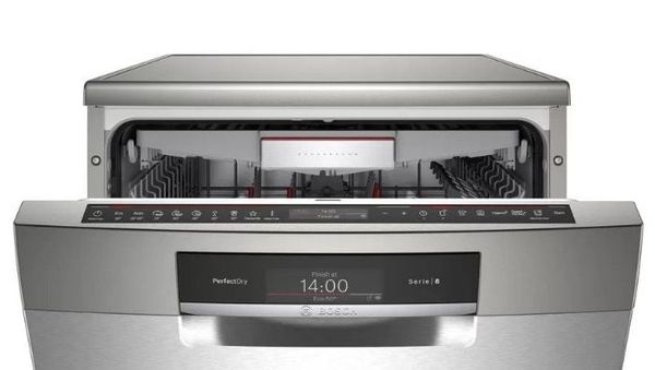 Với 8 chương trình rửa chén chính, người dùng có thể lựa chọn giữa các chế độ bao gồm: Rửa tự động 35 – 45oC, rửa tự động 45 – 65oC, rửa tự động 65 – 75oC, rửa nhanh 60oC, rửa tiết kiệm 50oC, rửa ban đêm 50oC, rửa nhanh 45oC, ngâm trước khi rửa. Điều này giúp đáp ứng nhu cầu rửa chén của gia đình với đa dạng các loại bát đĩa và đồ dùng khác nhau. Ngoài ra, máy rửa bát độc lập Bosch SMS88TI03E còn tích hợp 5 chương trình phụ bổ sung bao gồm: Rửa nhanh, rửa nửa tải, rửa diệt khuẩn, rửa chuyên sâu, làm khô thông minh. Nhờ đó, người dùng có thể linh hoạt tùy chọn các chương trình phụ này để đạt được kết quả rửa chén tối ưu, dễ dàng vệ sinh các loại đồ dùng đặc biệt hoặc làm khô chúng một cách hiệu quả.