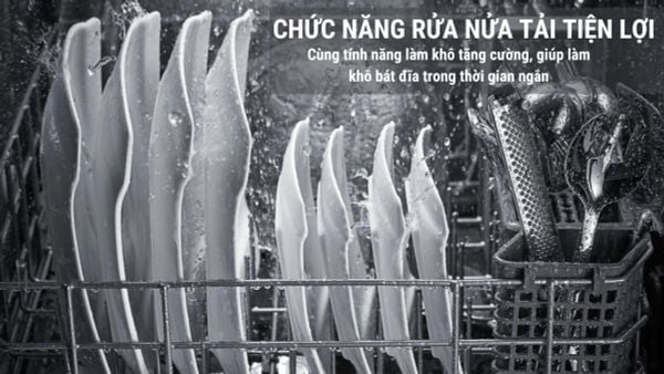 Thiết bị được tích hợp thêm chức năng rửa nửa tải, cho phép người dùng sử dụng chỉ một nửa khay chứa và máy sẽ tự động điều chỉnh việc sử dụng nước theo tỉ lệ tương ứng, giúp tiết kiệm nước và điện hiệu quả. Đồng thời, tính năng làm khô tăng cường với hiệu quả sấy khô lớn 80 - 90% có khả năng làm khô bát đĩa sạch sẽ trong thời gian ngắn nhất, tạo ra thành phẩm hoàn hảo sau mỗi lần sử dụng.