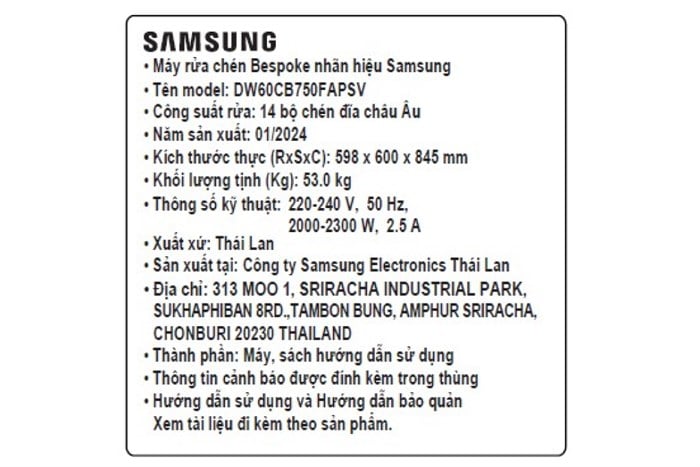Máy rửa chén độc lập Samsung Bespoke DW60CB750FAPSV tích hợp công nghệ Inverter và AI Energy Saving kết hợp cùng nhau mang đến hiệu quả tiết kiệm điện vượt trội, tối đa lên đến 23%.