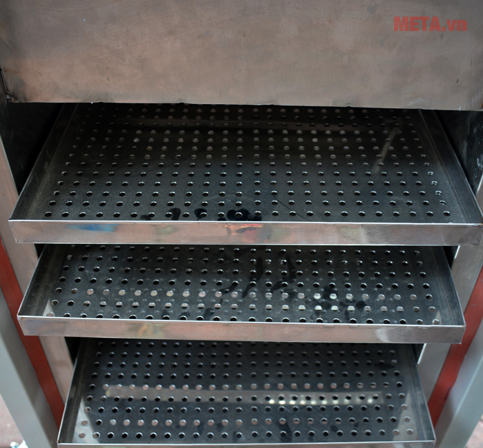 Máy thiết kế 6 khay với kích thước 38cm x 30cm x 2cm có đục lỗ 5mm thuận tiện cho quá trình sấy đồng thời nhiều loại hạt khác nhau và với số lượng nhiều.