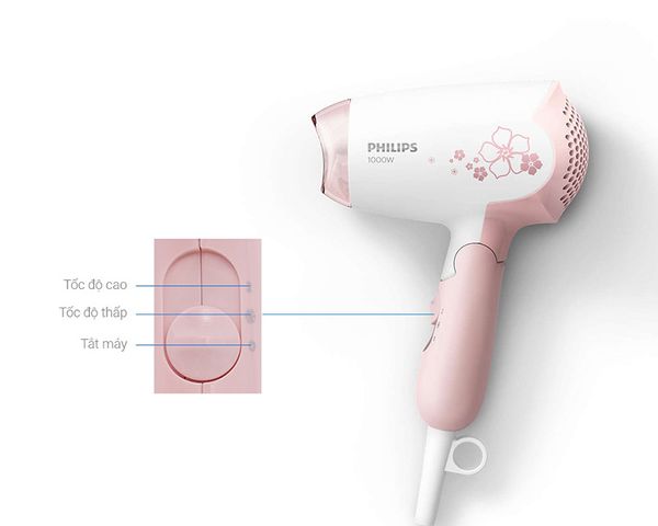 Máy sấy tóc được thiết kế với phần tay cầm có thể gập xuống, giúp người dùng dễ dàng bảo quản và thuận tiện mang theo khi đi du lịch.