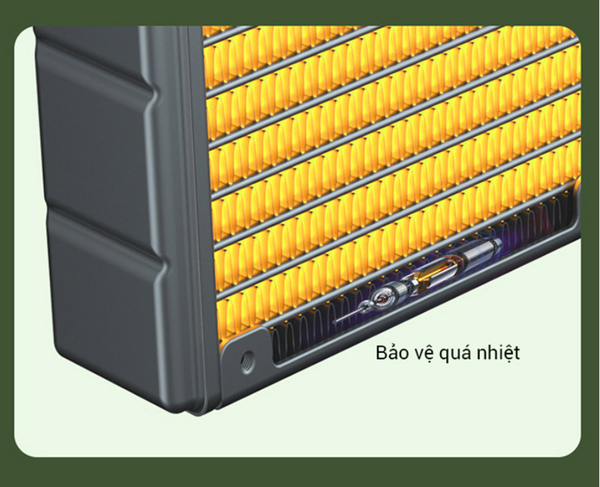 Nhờ thiết kế không dùng lửa, máy sưởi H08 loại bỏ hoàn toàn nguy cơ cháy nổ và bỏng rát. Điều này đặc biệt phù hợp với gia đình có trẻ nhỏ hoặc người lớn tuổi, đảm bảo an toàn tuyệt đối trong suốt quá trình sử dụng.