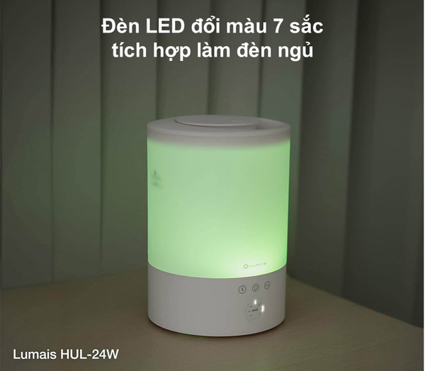 Kết hợp cùng 7 màu đèn LED dịu nhẹ, Lumias HUL-24W giúp tạo nên không gian ấm cúng, thư thái. Người dùng có thể để đèn tự chuyển màu liên tục hoặc cố định ở một màu yêu thích – rất thích hợp cho giấc ngủ, thiền hoặc thư giãn cuối ngày.