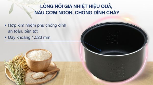 Nhờ công suất mạnh mẽ, nồi có thể nấu chín cơm chỉ trong vòng 20-30 phút, giúp bạn tiết kiệm thời gian nấu nướng.