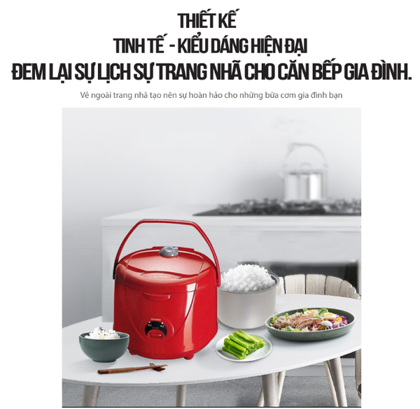Nồi cơm điện Cuckoo CR 1021 có thiết kế hiện đại với hai màu sắc chính là đỏ và trắng (sữa). Điều này giúp nó phù hợp với nhiều không gian bếp khác nhau. Đây là dòng nồi cơm có dung tích 1.8l, với dung tích vừa đủ cho gia đình 4-6 người. Thiết kế gọn gàng, dễ di chuyển nhờ tay xách tiện dụng và vỏ ngoài bằng nhựa cao cấp chống gỉ sét. Điều này đảm bảo sản phẩm luôn bền bỉ theo thời gian.