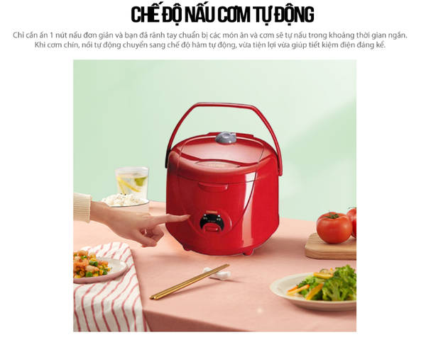 Sử dụng nồi cơm Cuckoo 1.8L CR-1021, chỉ cần ấn nút nấu và nồi sẽ tự động gia nhiệt làm chín cơm trong khoảng thời gian ngắn. Khi cơm chín, nồi tự động chuyển sang chế độ hâm tự động, vô cùng tiện lợi và tiết kiệm điện năng lại cho chất lượng cơm ngon dẻo, ấm nóng.