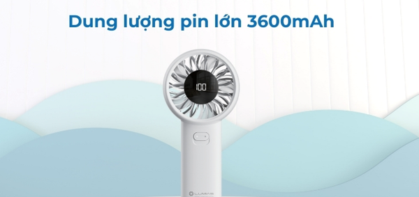 Quạt cầm tay Lumias S3600 nhỏ gọn 220g, pin 3600mAh dùng 11.5 giờ, màn hình LED hiển thị, sạc Type-C, chip bảo vệ đa lớp chống quá nhiệt – lựa chọn lý tưởng cho cuộc sống năng động và an toàn.