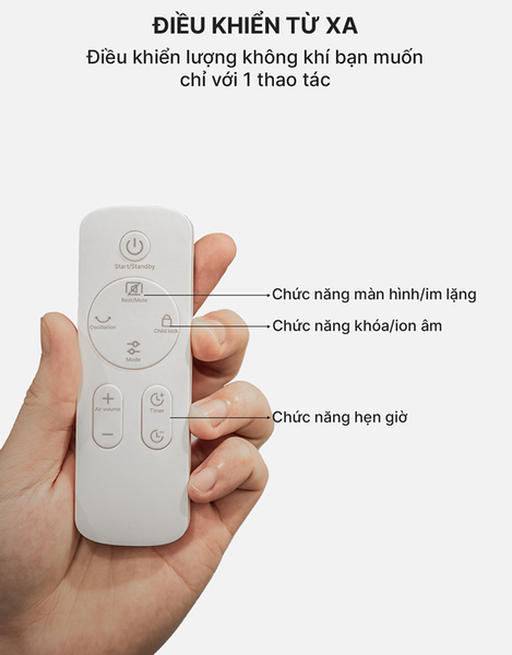 Điều chỉnh tốc độ gió, hẹn giờ, bật/tắt, khóa trẻ em chỉ với vài thao tác.