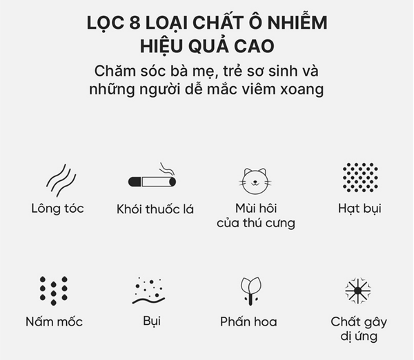 Cải thiện chất lượng không khí trong nhà, mang đến môi trường sống sạch, thoáng, đặc biệt phù hợp cho trẻ sơ sinh và người có vấn đề về hô hấp.