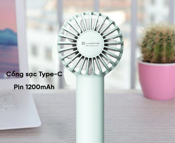 Sở hữu viên pin 3.7V dung lượng 1200mAh, quạt có thể hoạt động liên tục trong nhiều giờ mà không lo gián đoạn. Cổng sạc USB Type-C giúp nạp lại năng lượng nhanh chóng và tiện lợi từ laptop, pin dự phòng hoặc củ sạc thông thường – chỉ cần 3 giờ để sạc đầy.