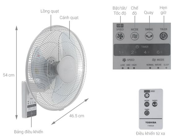 Toshiba F-WSA20(H)VN là dòng quạt treo của thương hiệu Toshiba đến từ Nhật Bản. Sản phẩm có kích thước 46.5 x 54 x 35cm (Ngang x Cao x Sâu), trọng lượng 3.6kg. Thiết kế dạng treo tường tiện lợi, lắp đặt cố định trên tường rất chắc chắn, tuổi thọ cao, tránh được các va đập hoặc chạm tay.