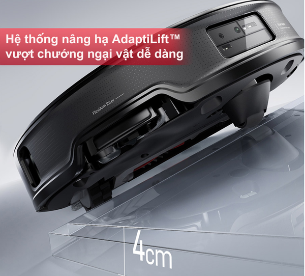 Trang bị công nghệ AdaptiLift™, robot có thể nâng gầm lên đến 4cm, dễ dàng vượt qua các rãnh cửa, thảm hay sàn không bằng phẳng. Hệ thống bánh xe xoay linh hoạt giúp robot di chuyển nhẹ nhàng trên mọi bề mặt mà không bị kẹt hoặc nghiêng lệch.