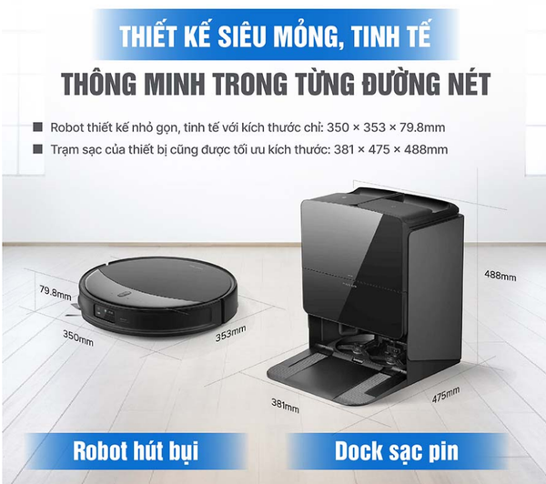 Robot có thể nhận diện không chỉ kích thước không gian mà còn cả chiều cao vật thể như bàn, ghế hay chướng ngại nhỏ. Nhờ đó, việc điều hướng và làm sạch được thực hiện chính xác, an toàn và nhanh hơn nhiều so với robot thông thường.