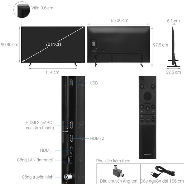 | Kích thước treo tường - Không chân đế | Ngang 156.06 cm - Cao 90.36 cm - Dày 6.1 cm - Nặng 22.2 kg |