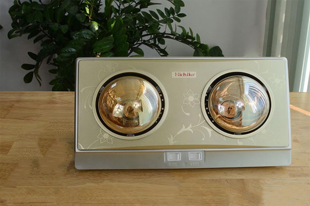 Sưởi nhà tắm Hichiko HC-021BG có 2 bóng hồng ngoại mạ vàng.