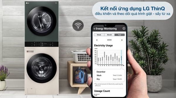 - Sản phẩm hỗ trợ kết nối LG ThinQ, cho phép người dùng điều khiển và theo dõi quá trình giặt – sấy từ xa qua điện thoại, mang lại sự linh hoạt tuyệt đối trong sinh hoạt hàng ngày.