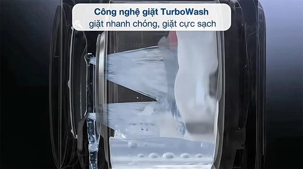- TurboWash sử dụng vòi phun áp lực cao và lồng quay tốc độ lớn giúp rút ngắn thời gian giặt nhưng vẫn đảm bảo hiệu quả giặt sạch tối ưu, tiết kiệm nước và điện năng.