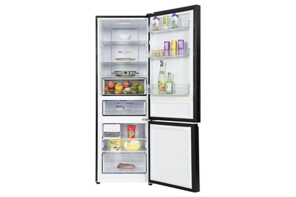 Ngăn lạnh có dung tích 199 lít chia làm 3 ngăn đi kèm với 1 ngăn rau củ quả và 1 ngăn đông mềm Magic Room. Ngoài ra, tủ lạnh Aqua 324 lít này còn thiết kế thêm 3 khay chứa nằm ở phía cánh cửa.